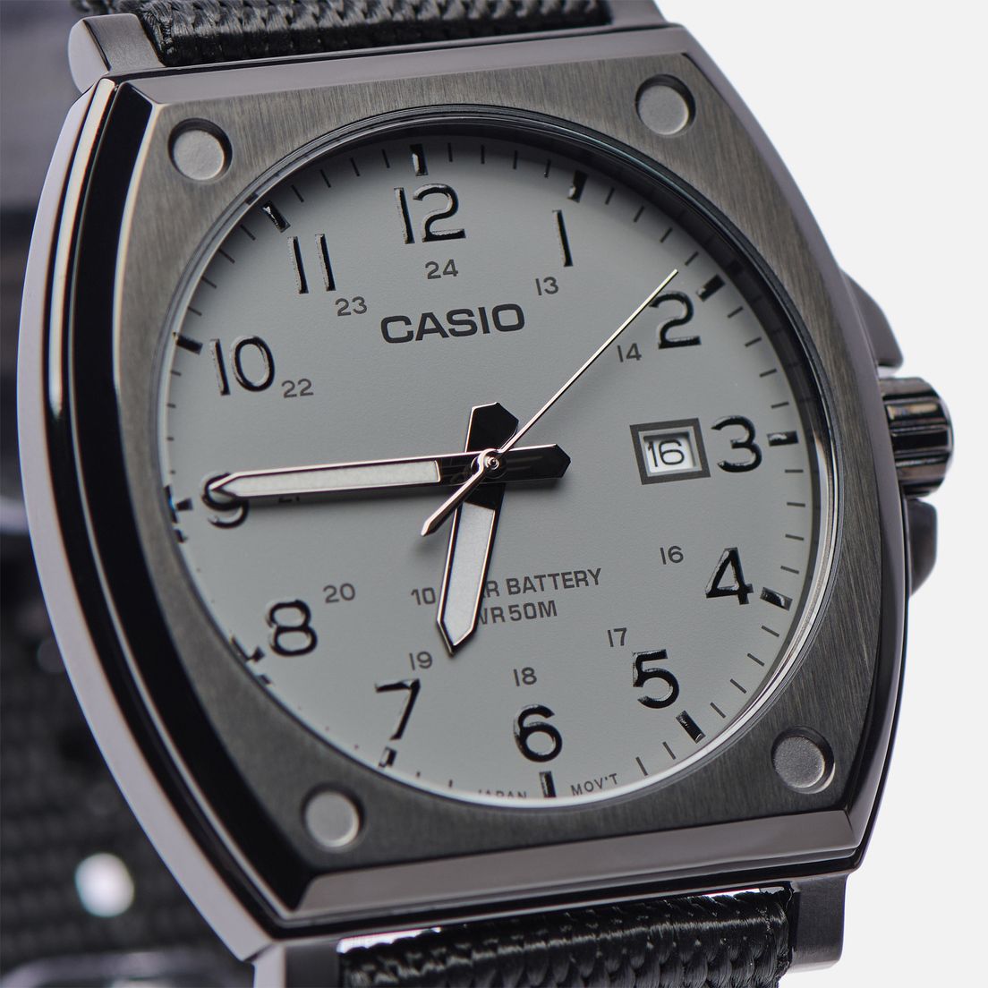 Стильная и лаконичная модель конца 2022 года из серии CASIO CLASSIC в харизматичном стальном бочкообразном корпусе черного цвета с серым стелс-циферблатом, покрытым прочным минеральным стеклом, станет прекрасным выбором в качестве модели на каждый день или аксессуаром, который будет приковывать к себе взгляды окружающих, гармонично дополняя собой тот или иной образ.