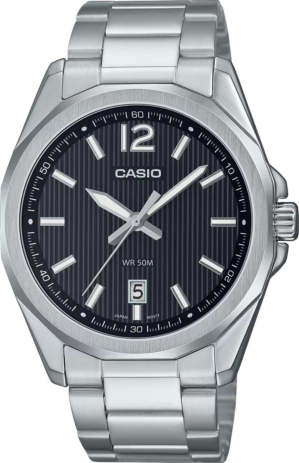 Стильный лаконичный трехстрелочник из серии CASIO CLASSIC в стальном корпусе с фактурным черным циферблатом, покрытым прочным минеральным стеклом станет отличным выбором в качестве модели на каждый день или аксессуаром, который будет приковывать к себе взгляды окружающих, гармонично дополняя собой любой ваш образ.