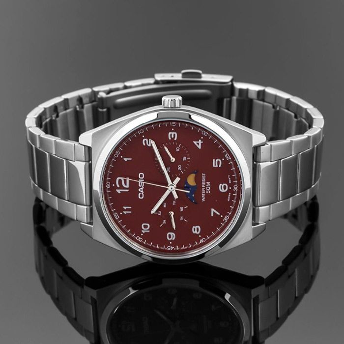 харизматичным циферблатом благородного бордового оттенка, покрытым прочным
