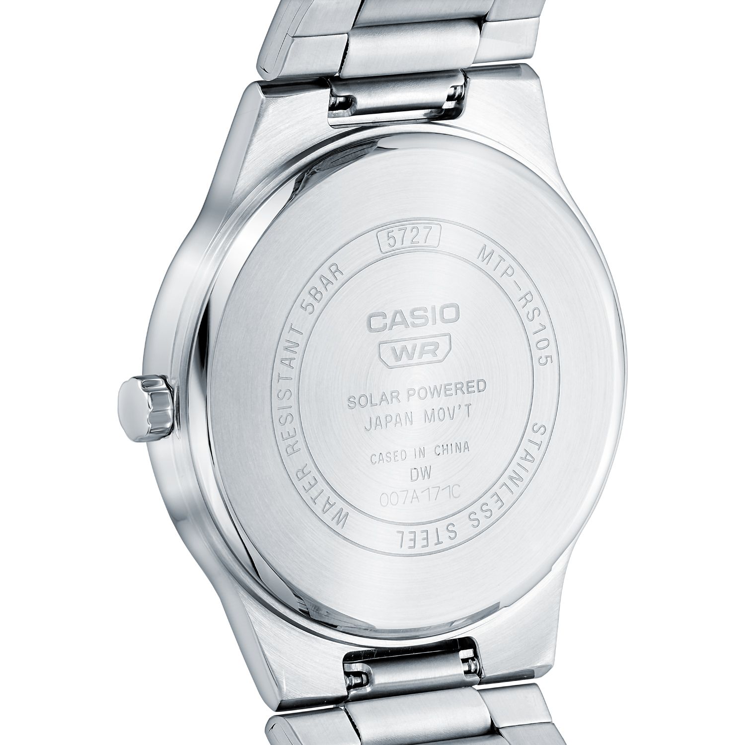 Часы представлены на стальном браслете и имеют на борту солнечную батарею,а также имеют небольшую влагостойкость в 5 Бар.