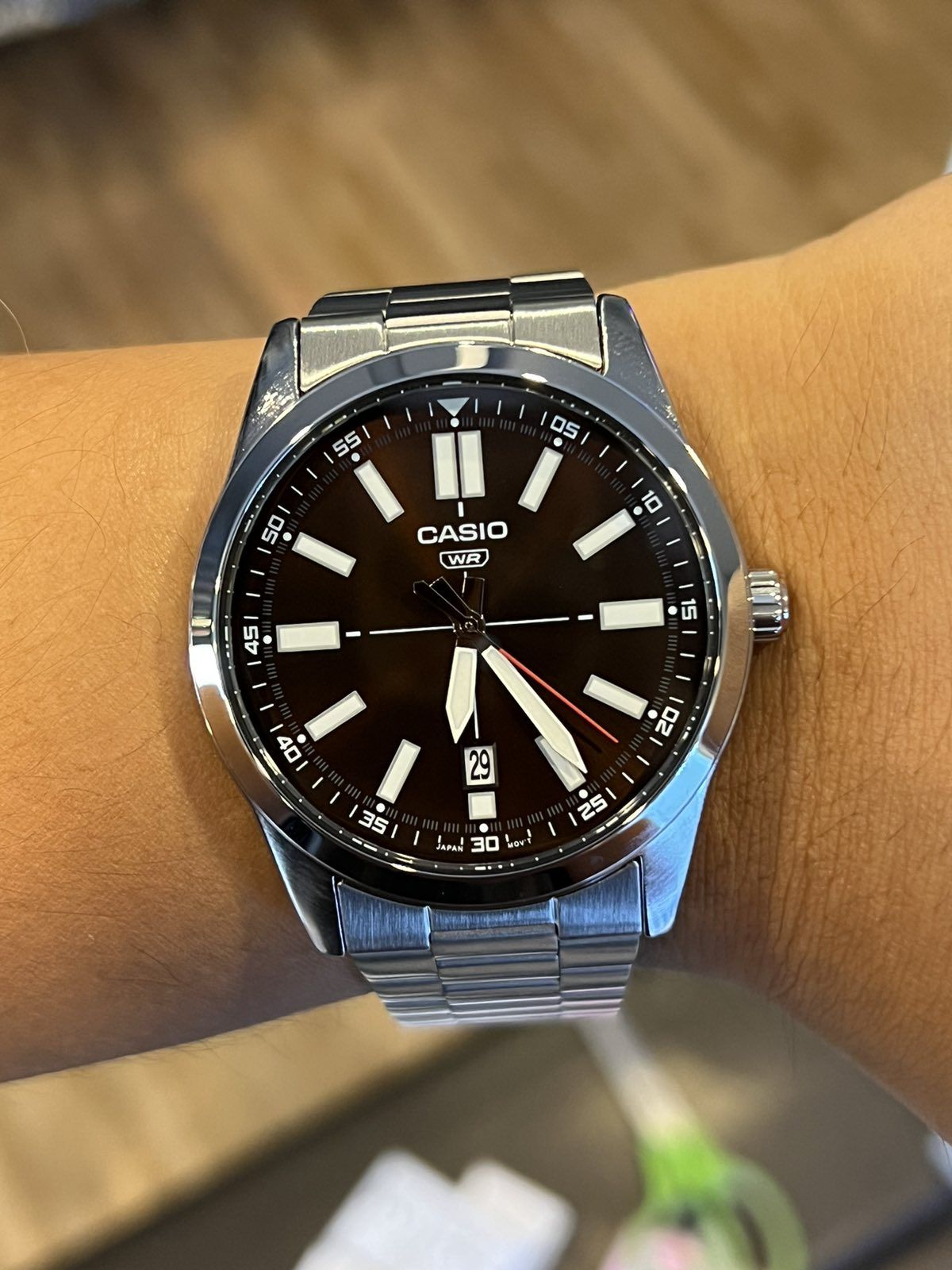 Светящееся покрытие обеспечивает длительную подсветку в темное время суток после короткого воздействия света.Циферблат с метками в виде штрихов выполнен по технологии Sunray (солнечные лучи).