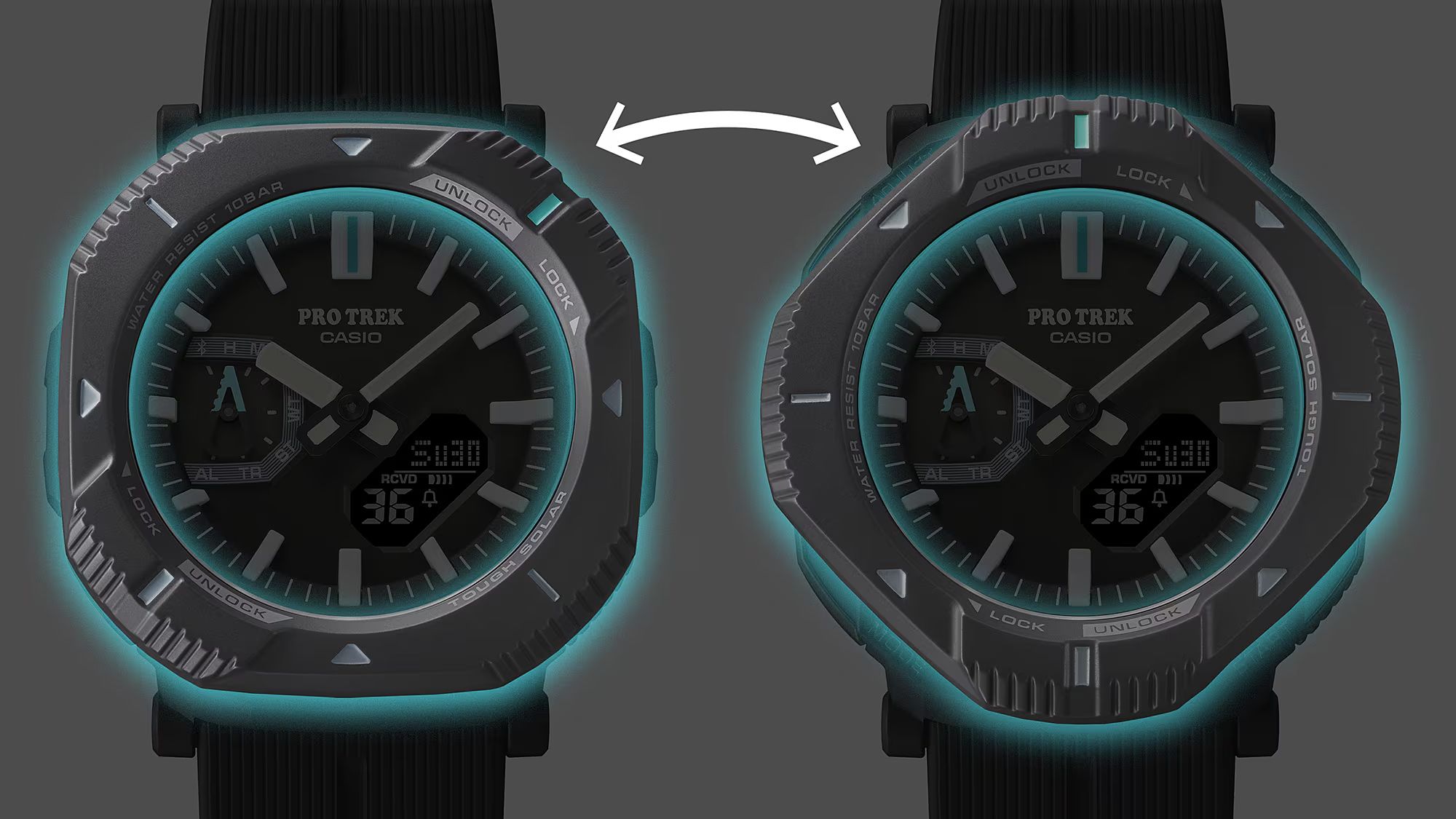 Релиз 2024года PRJ-B001 — самая легкая модель PRO TREK, подходящая для тех, кто любит длинные маршруты и сверхлегкие походы. В этой модели впервые используется поворотный защитный безель. Поворачивая этот безель, вы можете переключаться между двумя стилями. Стильный прямоугольный дизайн облегчает повседневное использование, а кнопки скрыты, чтобы предотвратить случайное нажатие во время прогулки или использования по городу. С другой стороны, когда вы используете множество функций, например, во время занятий, вы можете повернуть безель на 45 градусов, чтобы открыть кнопки, и изменить форму, чтобы упростить работу. Мягкий уретановый ремешок не подвергается нагрузкам даже при длительном использовании, а угольно-серый цвет гармонирует с природой. Флуоресцентные цвета часовых букв и безеля добавят красок вашему образу на открытом воздухе. Основные детали, такие как корпус и ремешок, изготовлены из экологически чистого пластика из биомассы. Кроме того, он оснащен надежной солнечной батареей и Bluetooth® и может быть связан со смартфонами. Нажимая кнопки на часах, вы можете записывать текущее время и местоположение на карте специального приложения и управлять ими как журналом действий. Это делает эту модель самой легкой моделью, которая позволяет вам вспоминать живописные места и записывать места, которые вы хотите посетить снова, расширяя возможности отдыха на свежем воздухе.