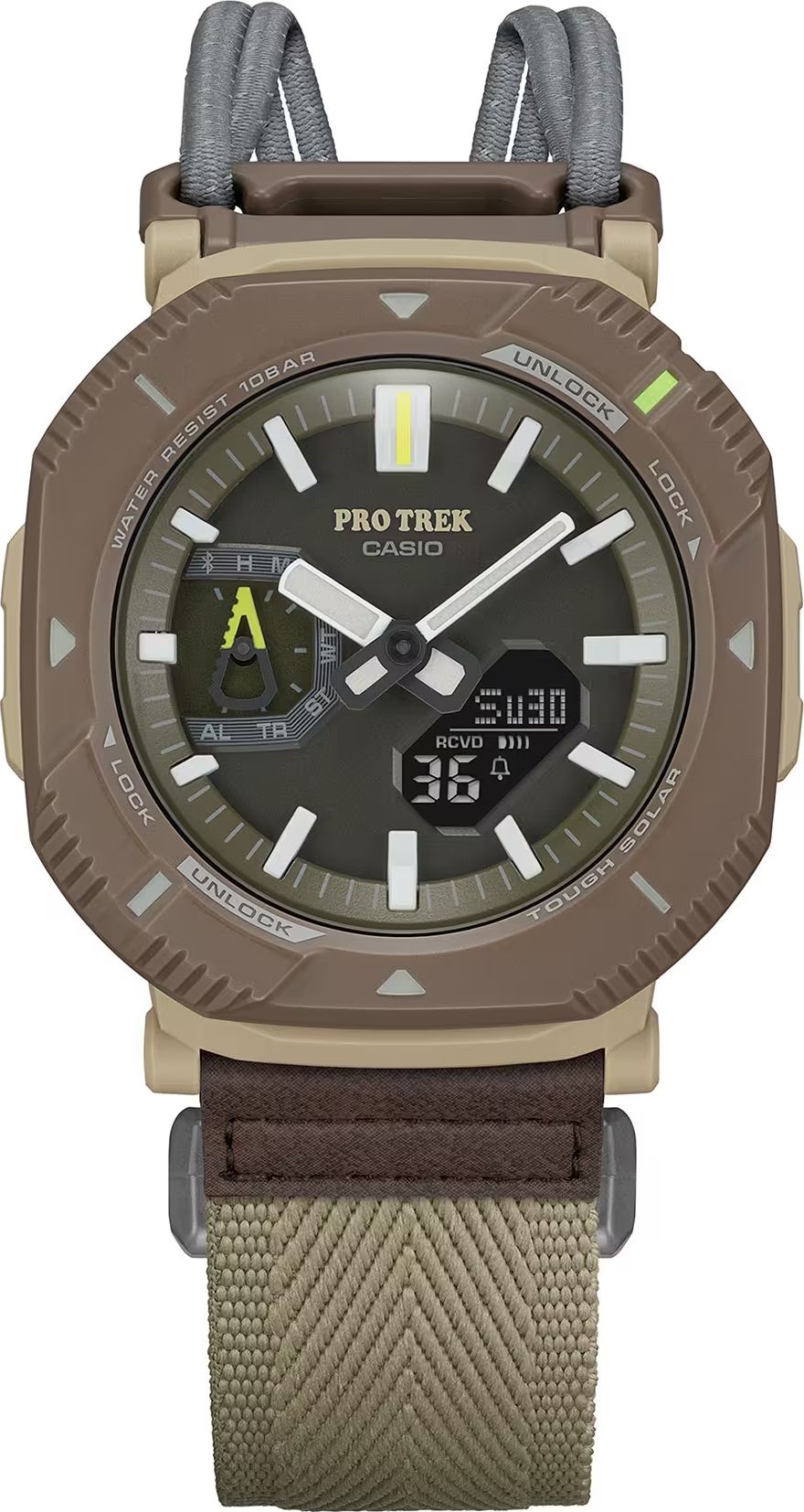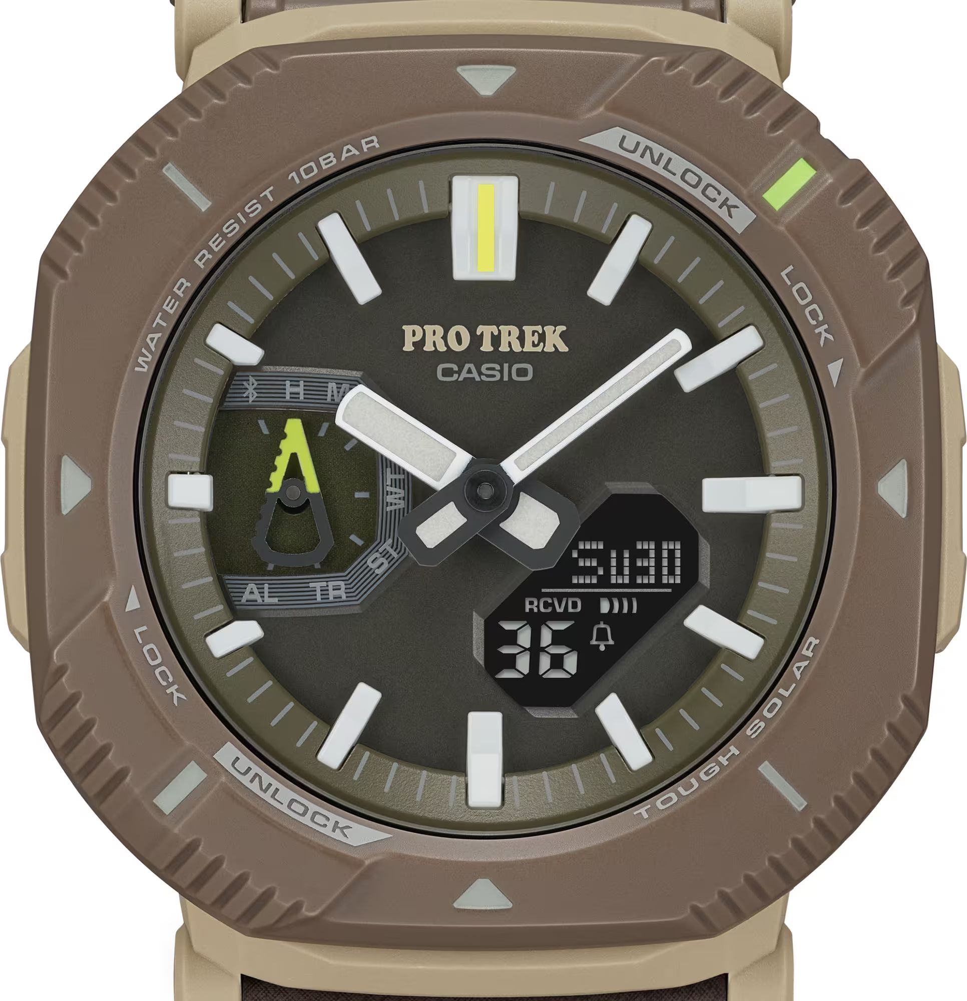 Релиз 2024года PRJ-B001 — самая легкая модель PRO TREK, подходящая для тех, кто любит длинные маршруты и сверхлегкие походы. В этой модели впервые используется поворотный защитный безель. Поворачивая этот безель, вы можете переключаться между двумя стилями. Стильный прямоугольный дизайн облегчает повседневное использование, а кнопки скрыты, чтобы предотвратить случайное нажатие во время прогулки или использования по городу. С другой стороны, когда вы используете множество функций, например, во время занятий, вы можете повернуть безель на 45 градусов, чтобы открыть кнопки, и изменить форму, чтобы упростить работу.