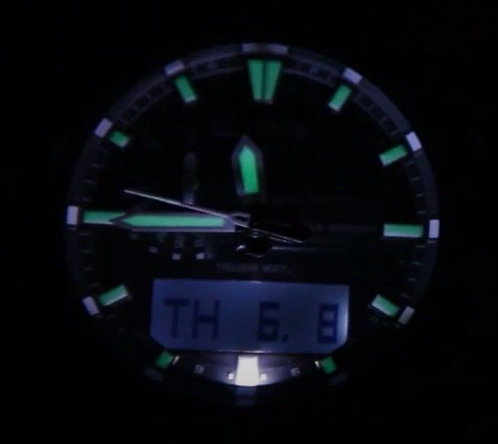 Двойная подсветка: одно нажатие кнопки обеспечит подсветку не только цифрового дисплея, но и аналогового циферблата. Благодаря наличию функции задержки, после отпускания кнопки освещение горит еще несколько секунд. Цвет подсветки: белый.