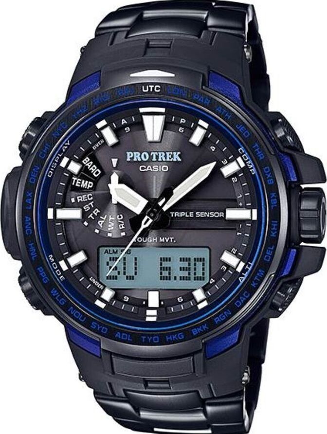 Перед вами флагманы PRO TREK с аналого-цифровым дисплеем и голубыми деталями из серии PRW-6000! Новый корпус толщиной всего 12.8 мм содержит в себе: термометр, барометр, высотомер и цифровой компас, солнечную батарею, радио-синхронизацию времени с атомными часами. Также модель оснащена системой SMART ACCESS, обеспечивающей быстрый и интуитивно понятный доступ ко всем важным функциям часов с помощью электронной заводной головки.
