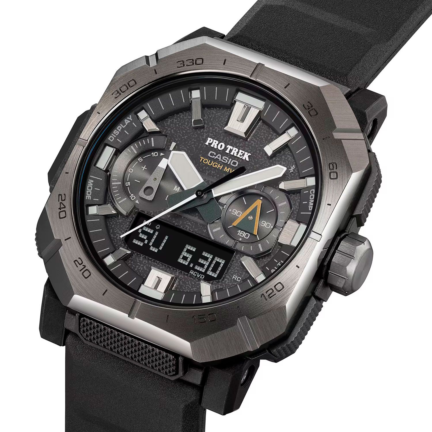 релиз 2025 года — один из флагманов PRO TREK в огнеупорном корпусе PRW-B1000 со стальным безелем на мягком, легком и супер прочном полимерном ремешке с добавлением CNF — целлюлозного нановолокна, что в 5 раз прочнее стали!