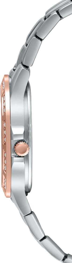Сияющие и переливающиеся элегантные часы с несколькими аналоговыми циферблатами, обеспечивающими изысканной функциональностью. Великолепный дизайн с индексами и безелем, украшенными кристаллами, придает часам особенно яркий блеск.