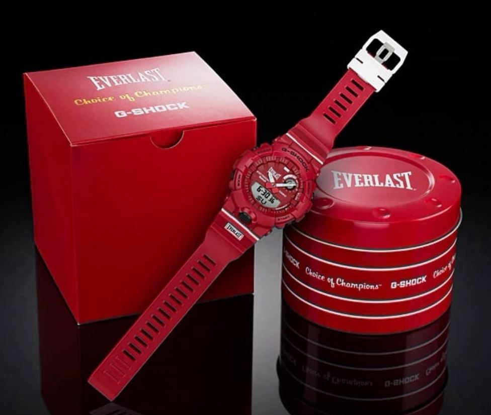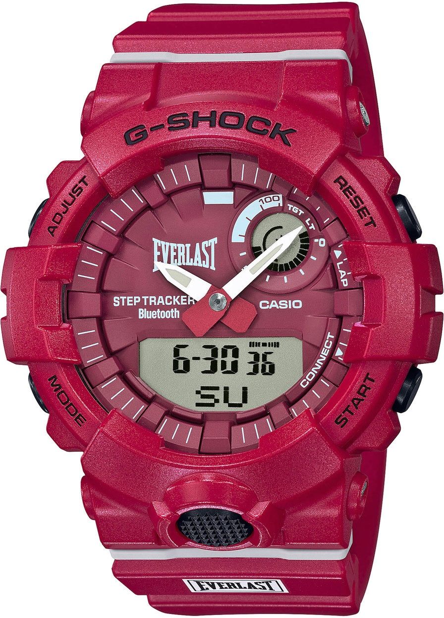 Перед вами харизматичная коллаборация 2019 года G-SHOCK и легендарного американского бренда боксерской экипировки — EVERLAST. В результате мы получили яркую модель в красном корпусе с фирменной "нашивкой" Everlast на ремешке и явной визуальной отсылкой к боксерским перчаткам бренда. Вполне логично, что за основу были взяты джи шоки из серии GBA-800 с функцией шагомера и способностью отслеживать вашу дневную активность, а с помощью технологии Bluetooth® часы способны синхронизироваться с вашим смартфоном и отображать все метрики дневной активности в специальном приложение G-SHOCK Connected App в максимально удобном и наглядном виде.