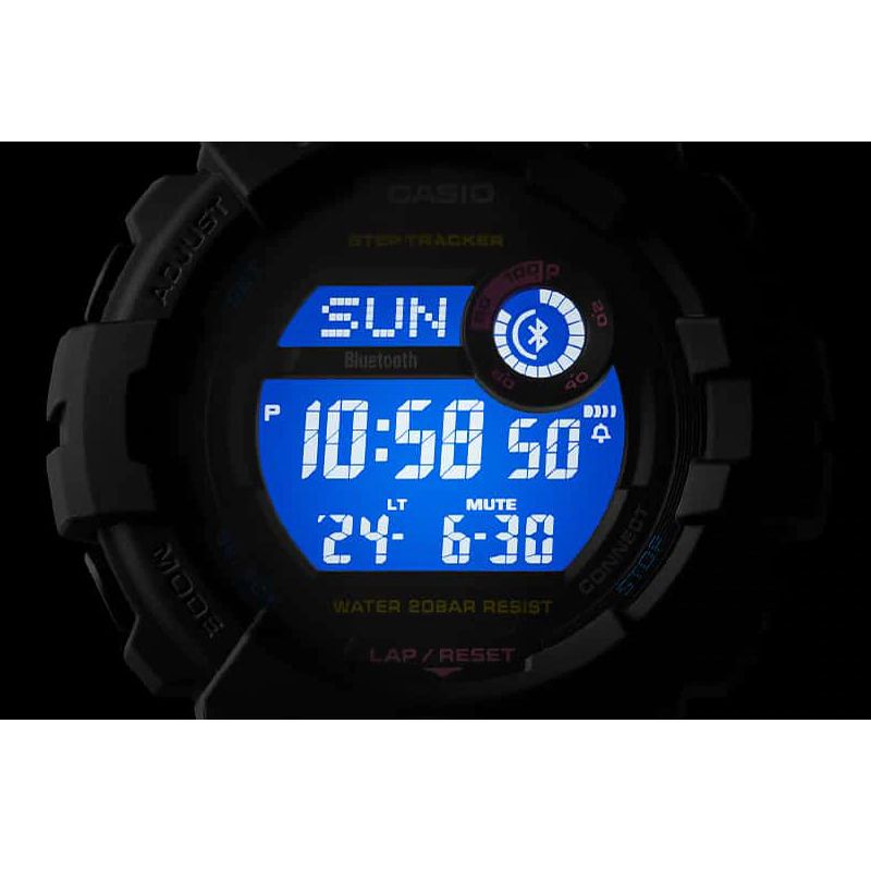 цифровая унисекс модель в черном корпусе с розовыми деталями, помимо отличной эргономики обладает функцией шагомера и способна отслеживать вашу дневную активность, а с помощью технологии Bluetooth® часы могут синхронизироваться с вашим смартфоном и отображать все метрики дневной активности в специальном приложение G-SHOCK Connected App в максимально удобном и наглядном виде.