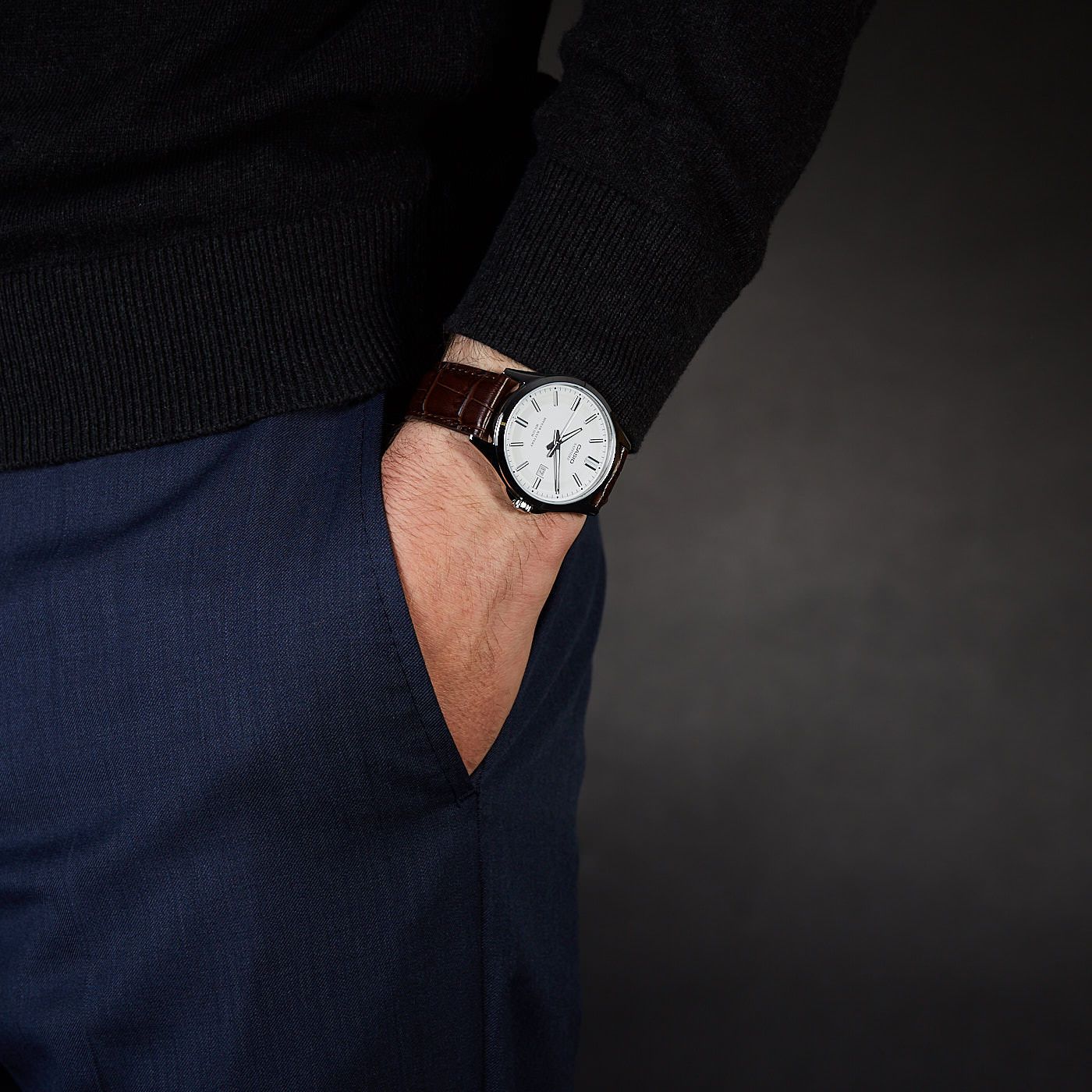 Стильная и лаконичная модель в круглом стальном корпусе, покрытым прочным сапфировым стеклом, станет прекрасным выбором в качестве модели на каждый день или аксессуаром, который будет приковывать к себе взгляды окружающих, гармонично дополняя собой тот или иной образ.