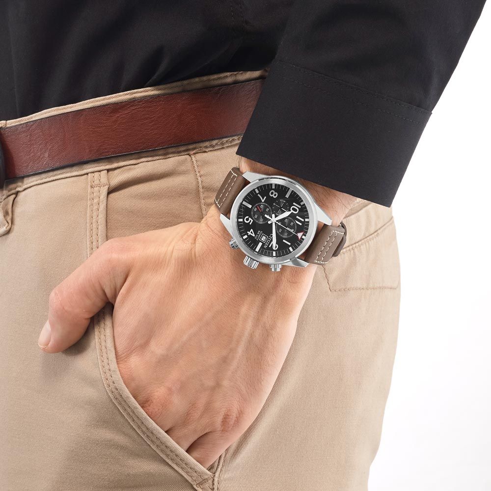 ПОЛМУЖСКИЕТИП МЕХАНИЗМАКВАРЦЕВЫЙЦВЕТ ЦИФЕРБЛАТАЧЕРНЫЙСПОСОБ ОТОБРАЖЕНИЯ ВРЕМЕНИАНАЛОГОВЫЙ (СТРЕЛКИ)МЕТКИ ЦИФЕРБЛАТААРАБСКИЕМАТЕРИАЛ КОРПУСАСТАЛЬЦВЕТ КОРПУСАСЕРЕБРЯНЫЙМАТЕРИАЛ БРАСЛЕТАКОЖАЦВЕТ БРАСЛЕТАКОРИЧНЕВЫЙФОРМА КОРПУСАКРУГСТЕКЛОМИНЕРАЛЬНОЕВОДОЗАЩИТА100 М(10АТМ)ХРОНОГРАФ(СЕКУНДОМЕР)естьКАЛЕНДАРЬестьДИАМЕТР43 ММ