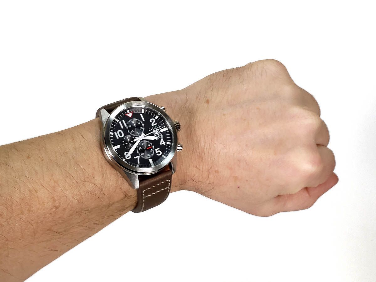 Секундная стрелка часов смещена на маленький циферблат (внизу).
