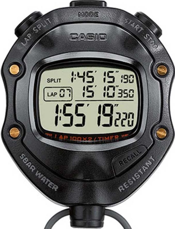 ПРОИЗВОДИТЕЛЬCasioПАМЯТЬ ИЗМЕРЕНИЙ100 РЕЗУЛЬТАТОВВОДОЗАЩИТА50 М (5 БАР не нажимать кнопки под водой)ТАЙМЕР ОБРАТНОГО ОТСЧЕТАестьВЫСОКАЯ ТОЧНОСТЬ 1/1000 секестьБУДИЛЬНИК, КАЛЕНДАРЬесть