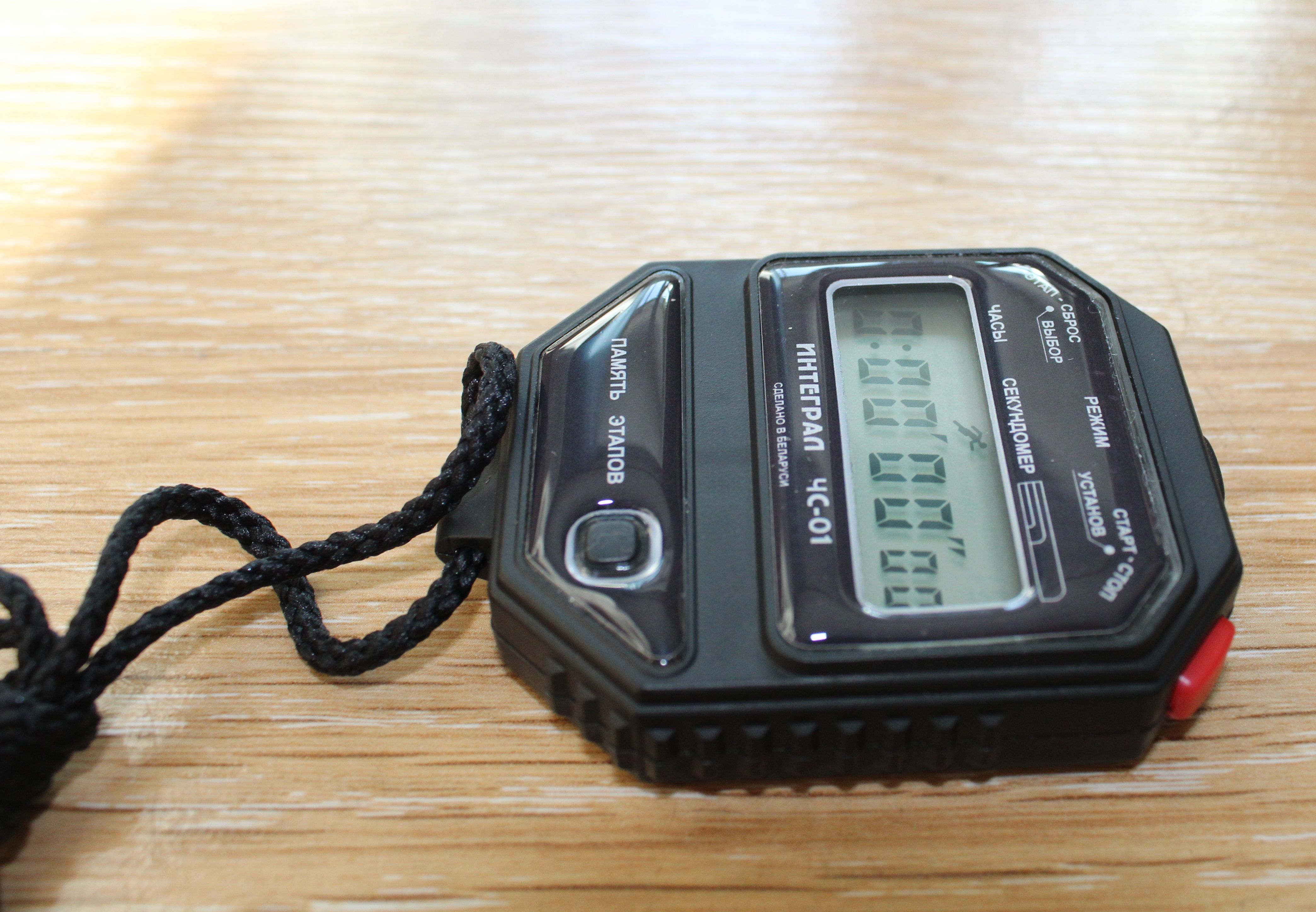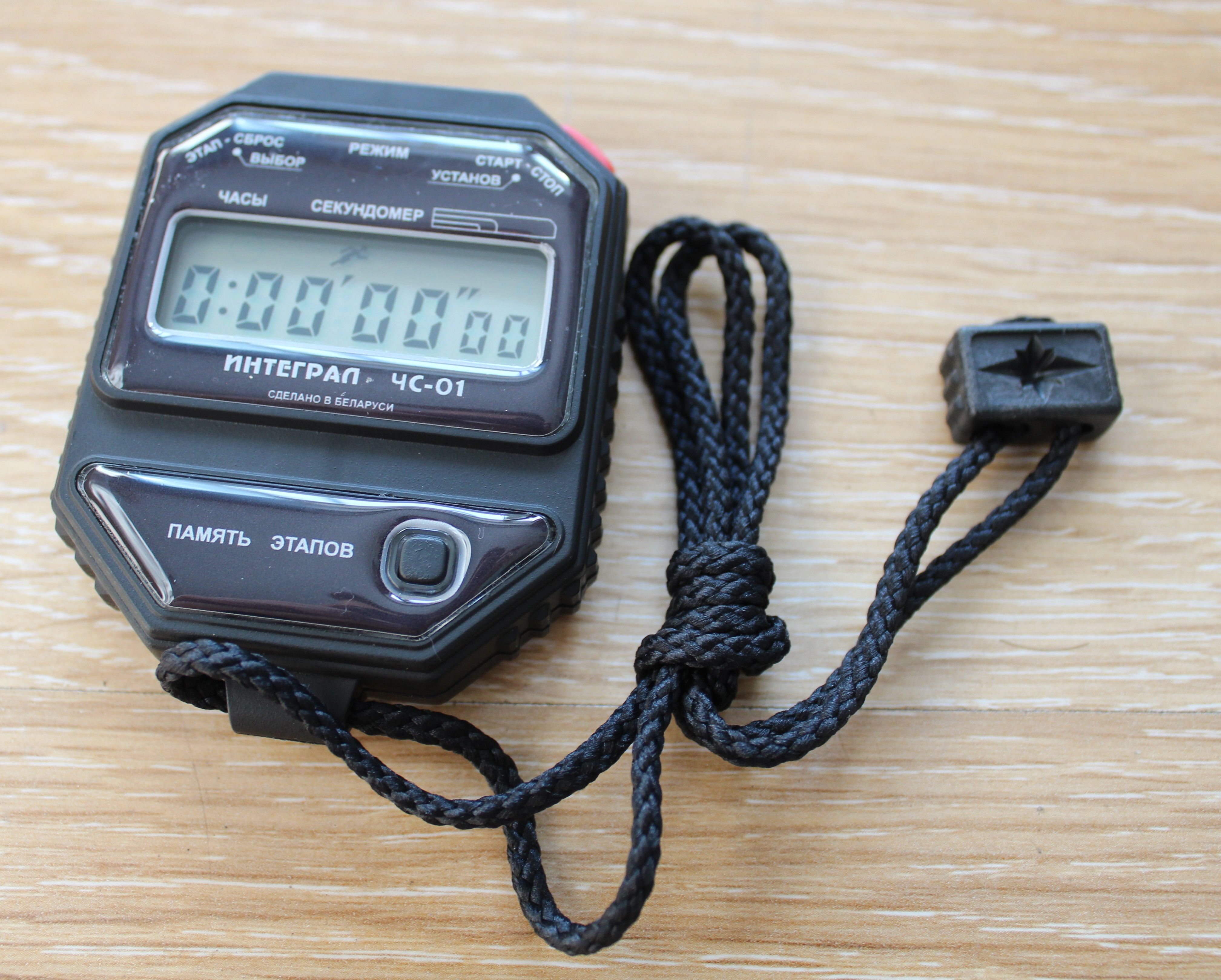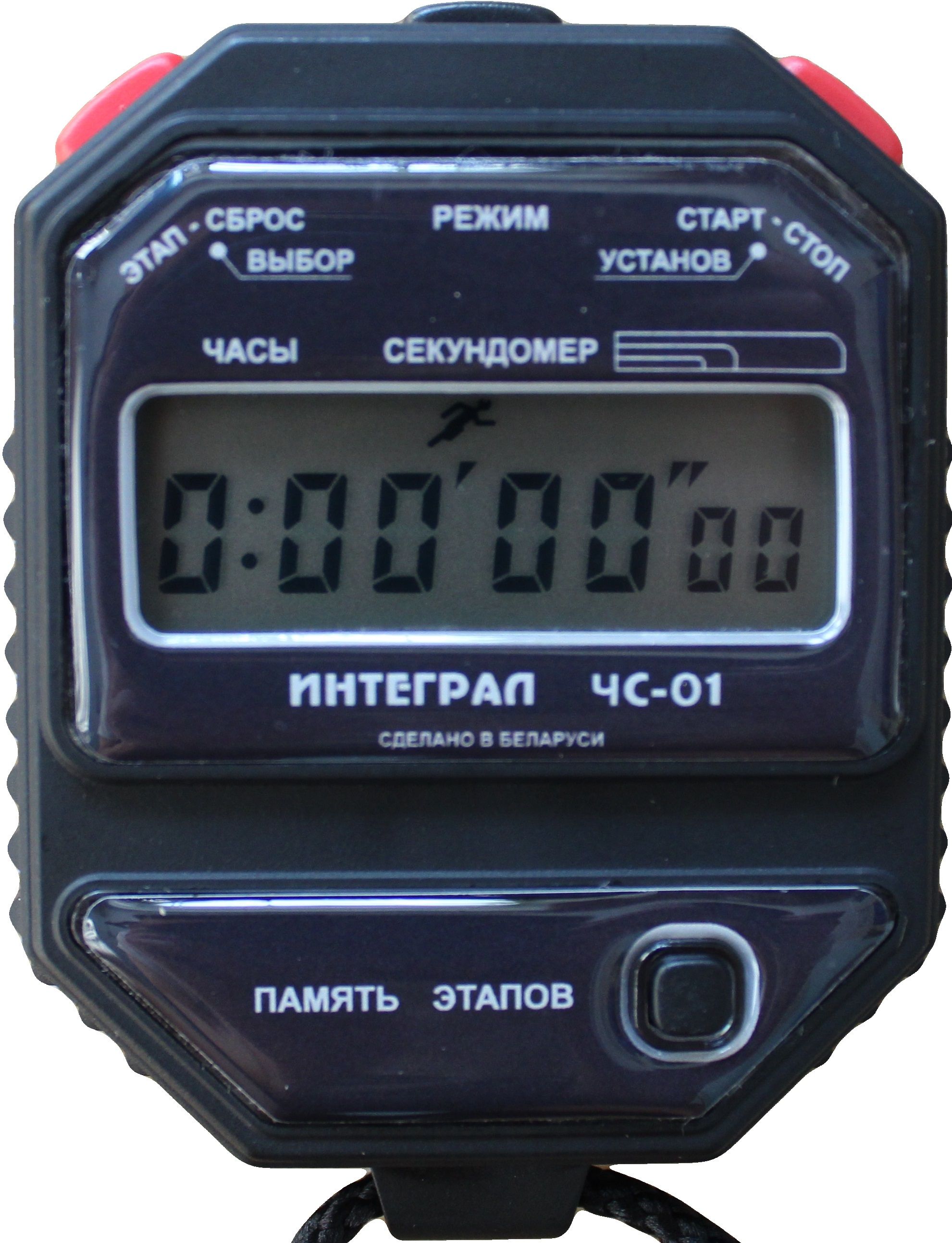 Спортивный секундомер с памятью на 10 результатов и часами.