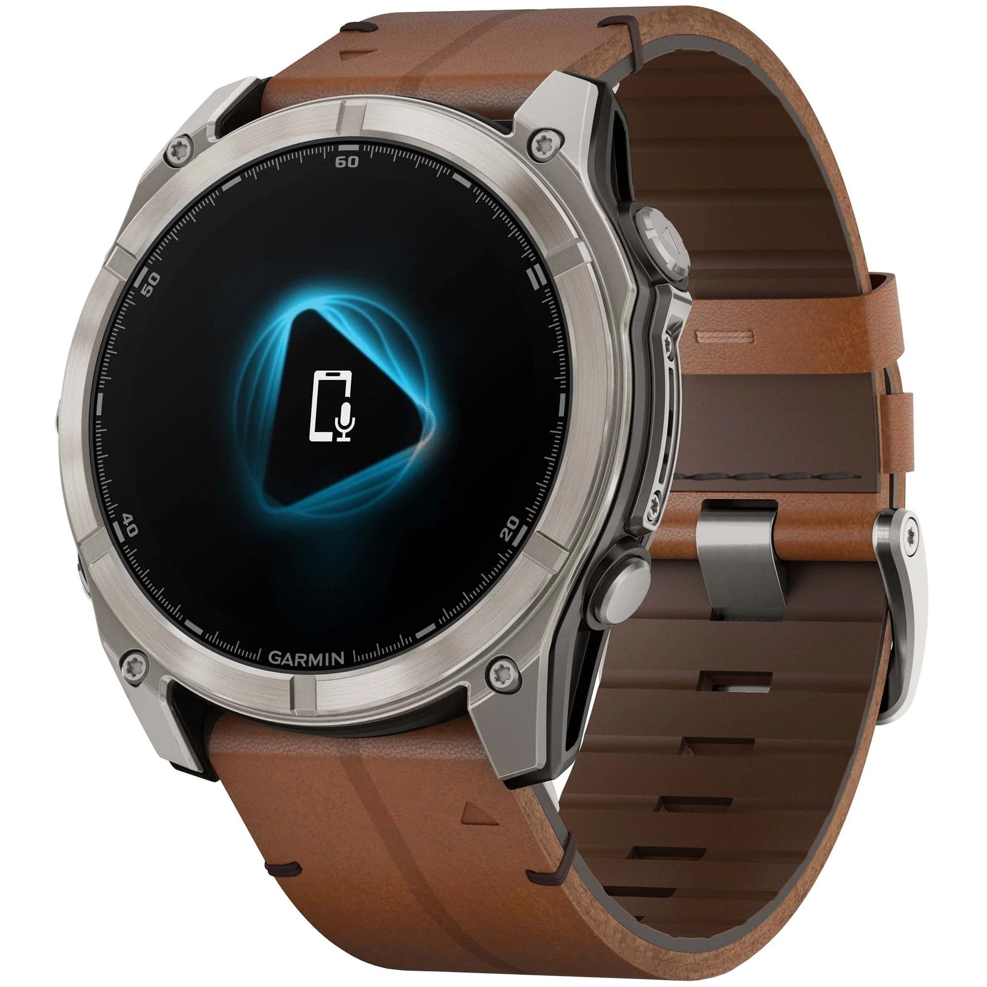 Часы Garmin Fenix 8 -51mm AMOLED Sapphire Bare Titanium / Black / Chestnut Leather Band