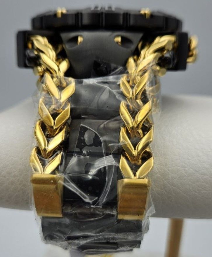 Мощный литой браслет декорирован стальной цепью.
