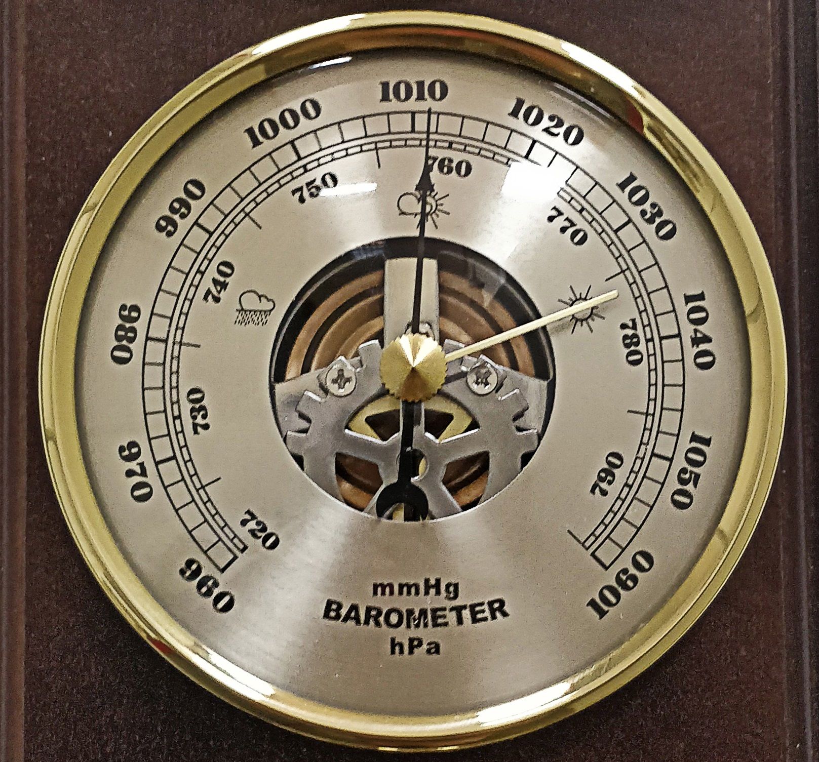 Шкала гигрометра внизу, диаметр шкалы 70 мм