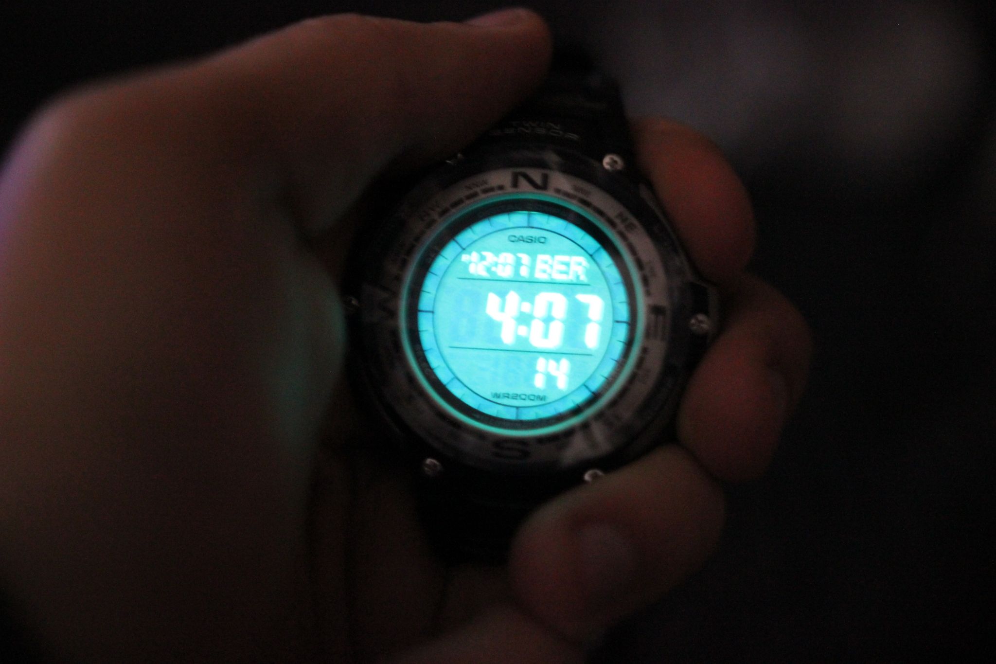 Благодаря электролюминесцентной панели, обеспечивающей освещение всего циферблата, облегчается считывание данных. В часах есть функция послесвечения - несколько секунда после того, как Вы нажали на кнопку подсветки, подсветка работает.