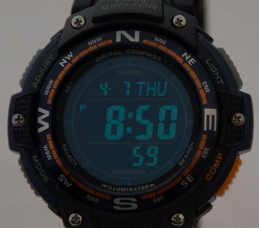Благодаря электролюминесцентной панели, обеспечивающей освещение всего циферблата, облегчается считывание данных. В часах есть функция послесвечения - несколько секунда после того, как Вы нажали на кнопку подсветки, подсветка работает.