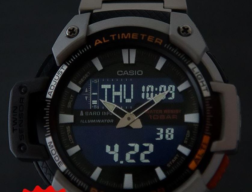 Благодаря электролюминесцентной панели, обеспечивающей освещение всего циферблата, облегчается считывание данных. В часах есть функция послесвечения - несколько секунда после того, как Вы нажали на кнопку подсветки, подсветка работает.Устойчивый к низким температурам (-10 °C)