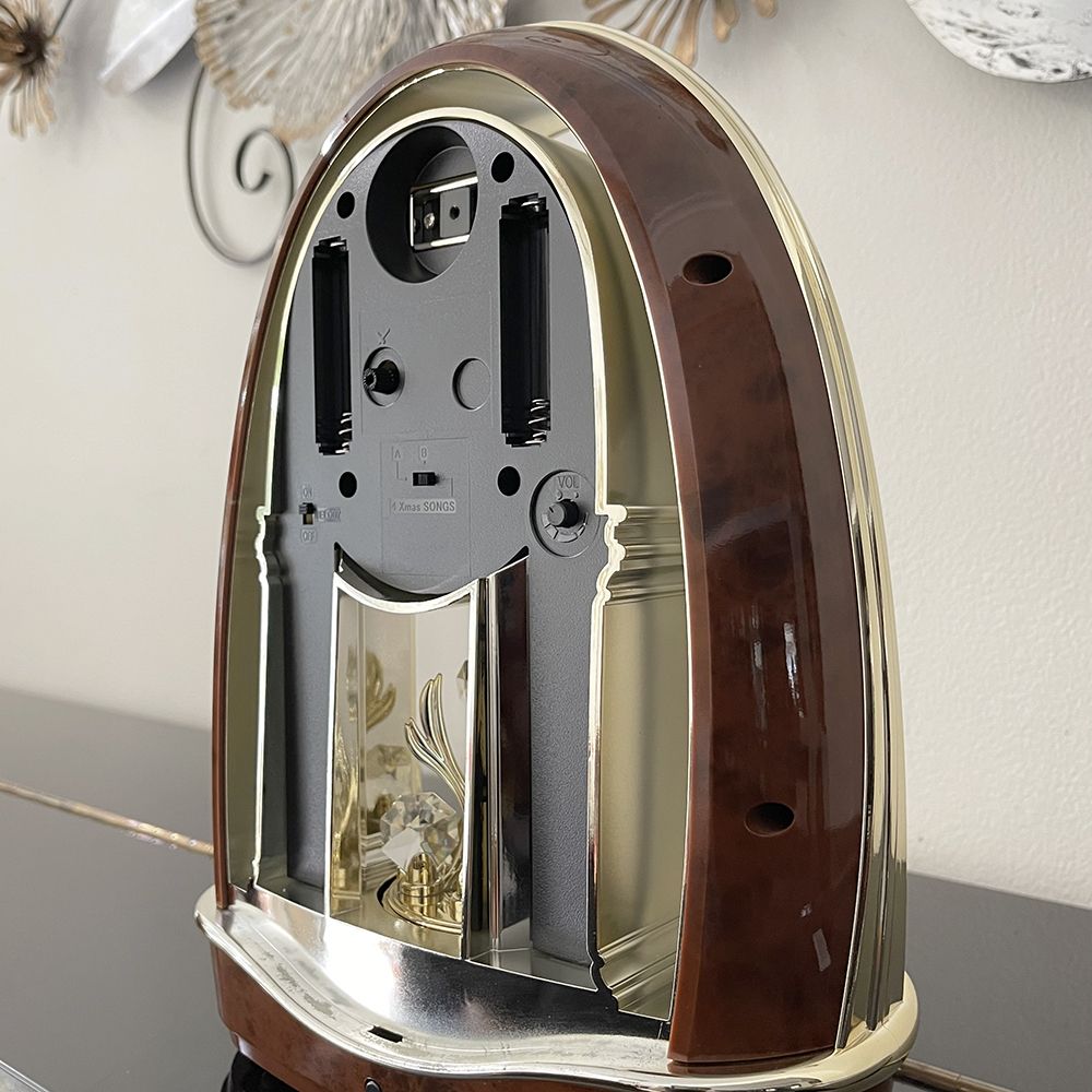 Наcтольные музыкальные часы в пластиковом корпусе с вставками под дерево.