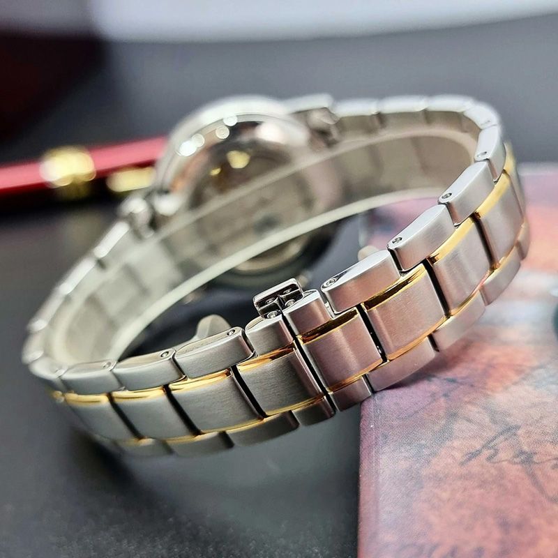 Корпус и браслет выполнен из нержавеющей стали с частичной IP покрытием позолотой,