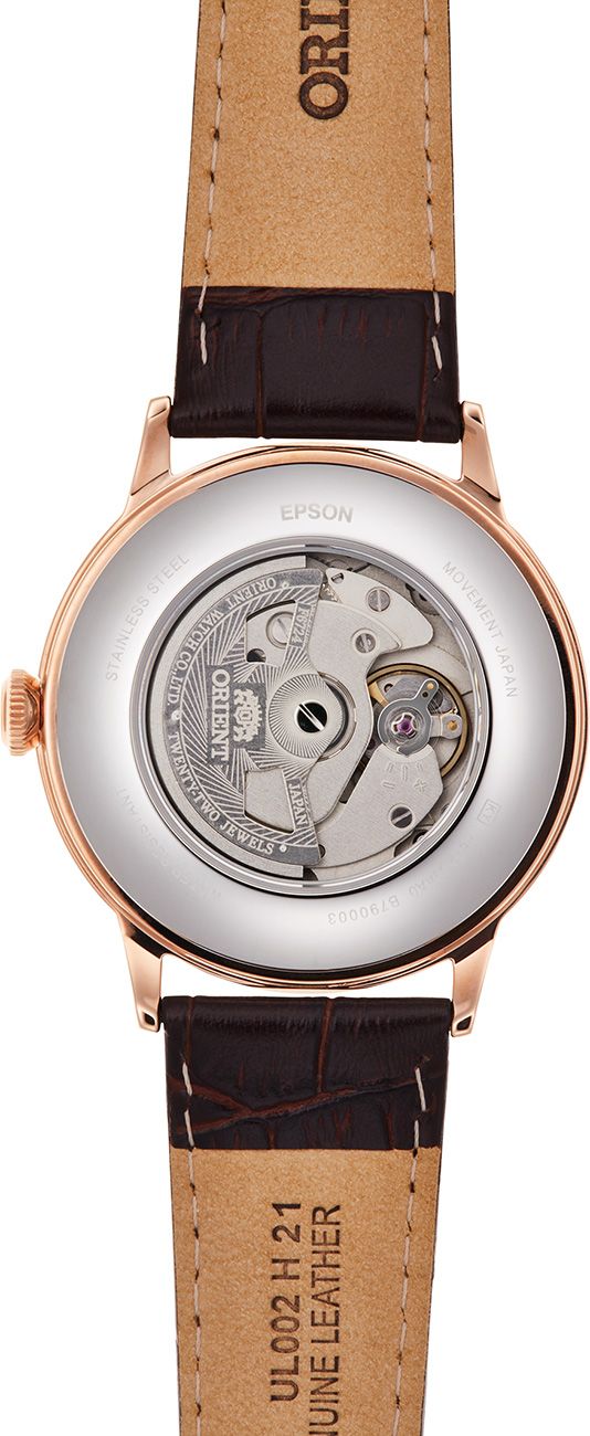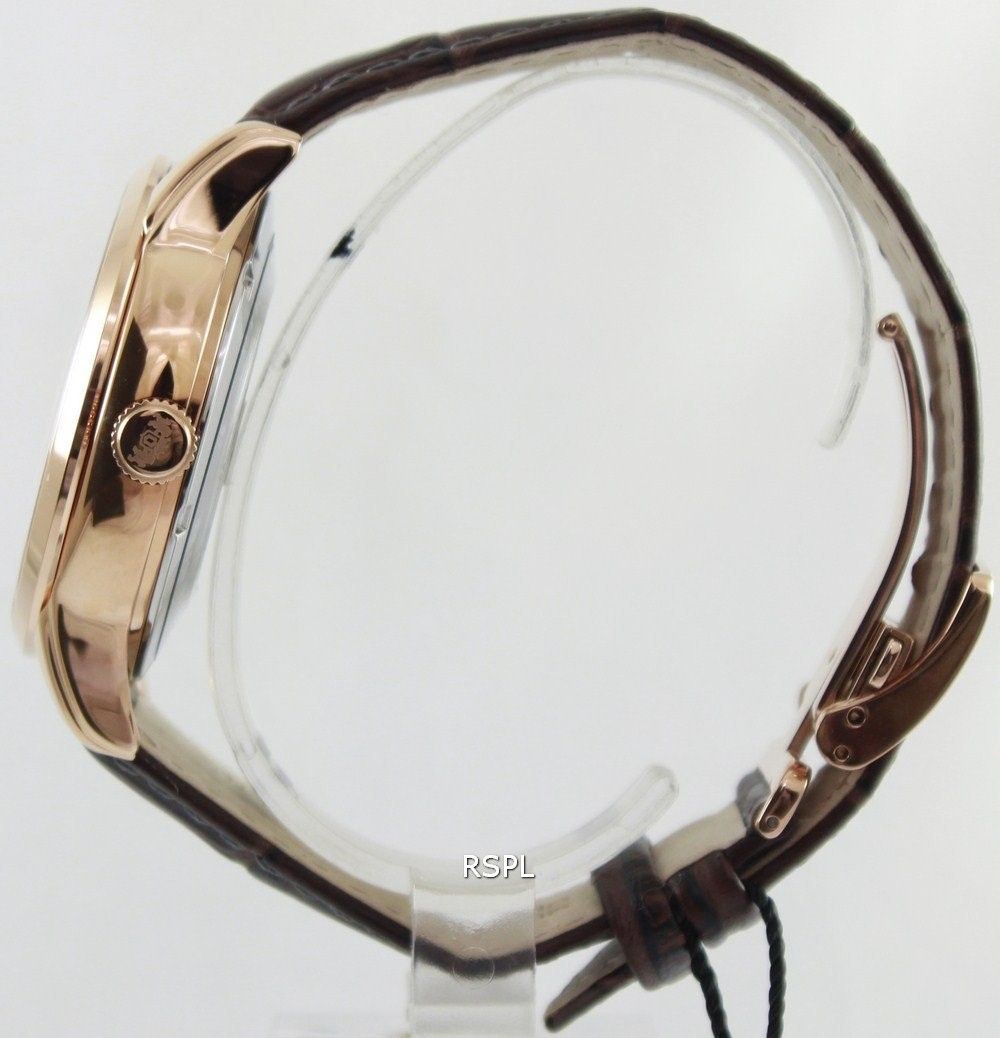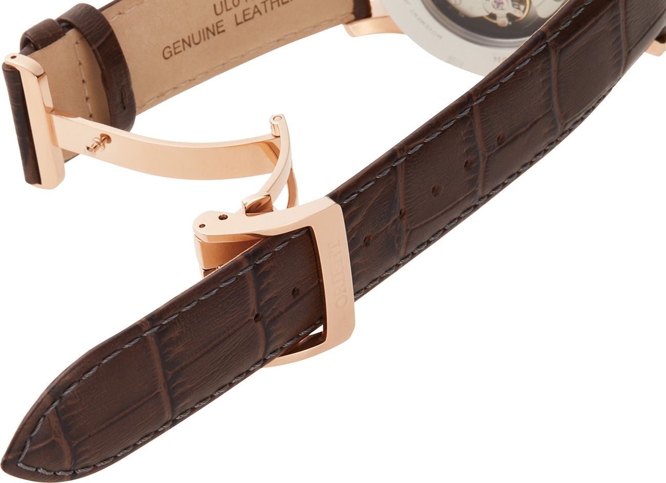 с полным PVD покрытием розовая позолота, ремешок из кожи.