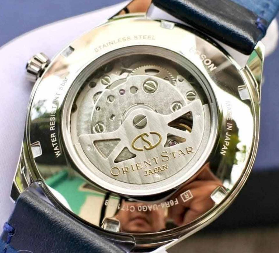 Сквозь прозрачное окошко на циферблате можно наблюдать работу механизма часов.