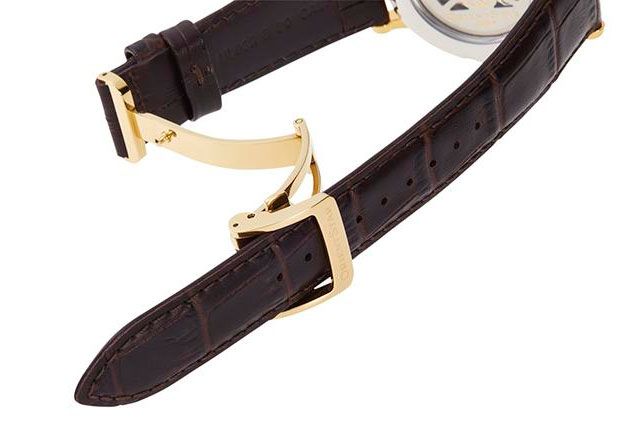 ПОЛМУЖСКИЕТИП МЕХАНИЗМАМЕХАНИЧЕСКИЙЦВЕТ ЦИФЕРБЛАТАБЕЛЫЙСПОСОБ ОТОБРАЖЕНИЯ ВРЕМЕНИАНАЛОГОВЫЙ (СТРЕЛКИ)МЕТКИ ЦИФЕРБЛАТАРИМСКИЕМАТЕРИАЛ КОРПУСАСТАЛЬЦВЕТ КОРПУСАЗОЛОТОЙМАТЕРИАЛ БРАСЛЕТАКОЖАЦВЕТ БРАСЛЕТАКОРИЧНЕВЫЙФОРМА КОРПУСАКРУГСТЕКЛОСАПФИРОВОЕВОДОЗАЩИТА50 М(5АТМ)КАЛЕНДАРЬестьИНДИКАТОР ЗАПАСА ХОДАестьДИАМЕТР39 ММ