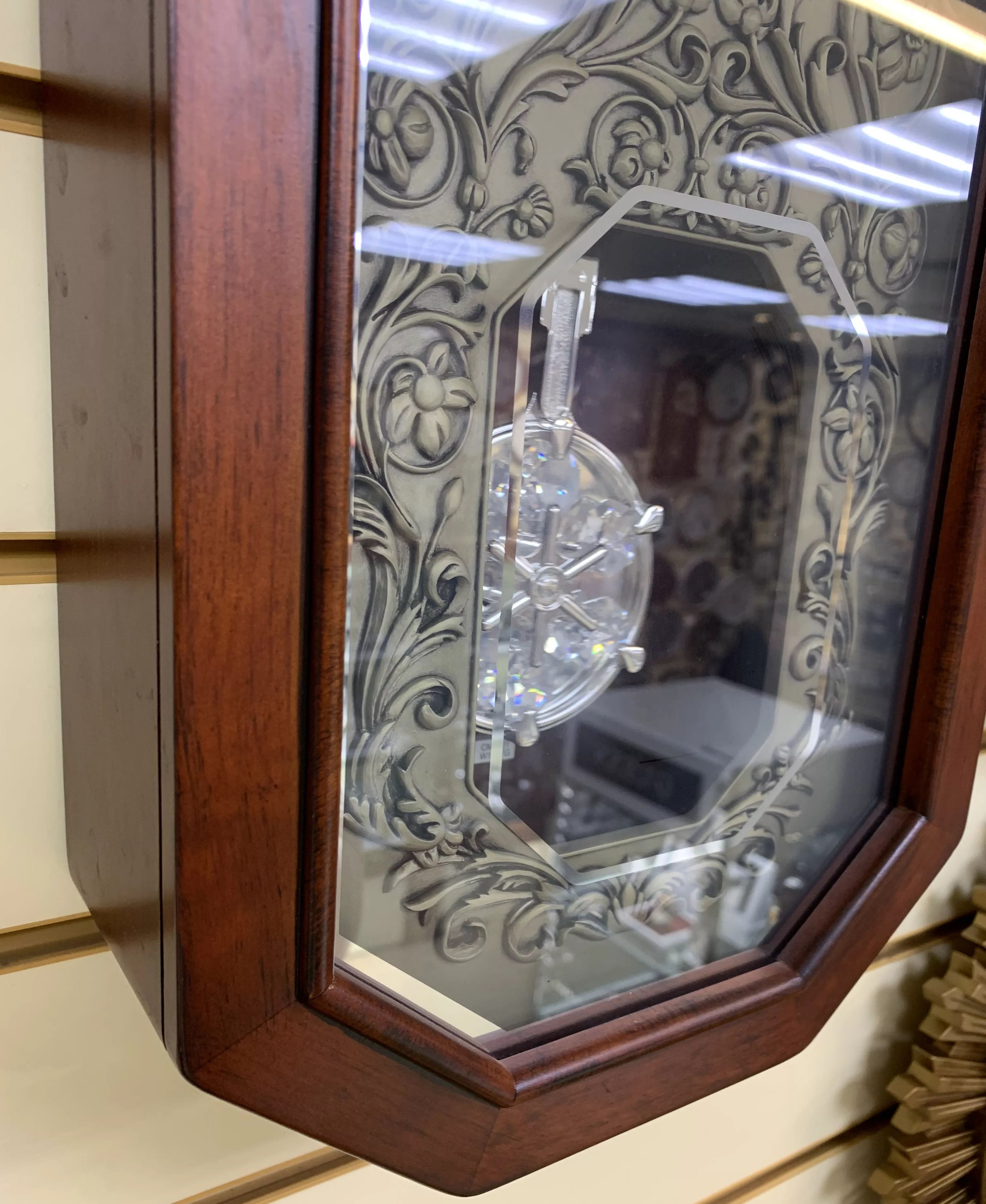 ФОРМАПРЯМОУГОЛЬНИКЦВЕТ КОРПУСАКОРИЧНЕВЫЙМАТЕРИАЛ КОРПУСАДЕРЕВОЦВЕТ ЦИФЕРБЛАТАСЕРЕБРЯНЫЙМАЯТНИККЛАССИЧЕСКИЙЦИФРЫРИМСКИЕКРИСТАЛЛЫ SwarovskiестьРЕГУЛИРОВКА ГРОМКОСТИестьОТКЛЮЧЕНИЕ ЗВУКААВТОМАТИЧЕСКОЕ С 22 ДО 6 ЧАСОВВЫСОТА54 СМ