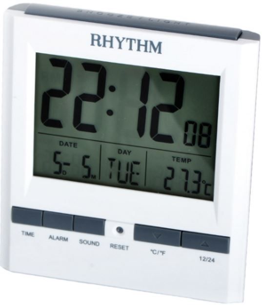 ПроизводительRhythmРазмещениенастольныеФормапрямоугольнаяМатериал корпусапластикЦвет корпусабелыйДень недели на русском языкеестьБудильникестьПодсветкаестьТермометрестьКалендарьесть2 независимых будильникаестьВысота9.5 см