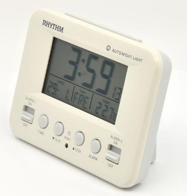 ПроизводительRhythmРазмещениенастольныеФормапрямоугольнаяМатериал корпусапластикЦвет корпусабелыйДень недели на русском языкеестьНочная подсветкаестьБудильникестьПодсветкаестьТермометрестьКалендарьесть2 независимых будильникаестьВысота8 см