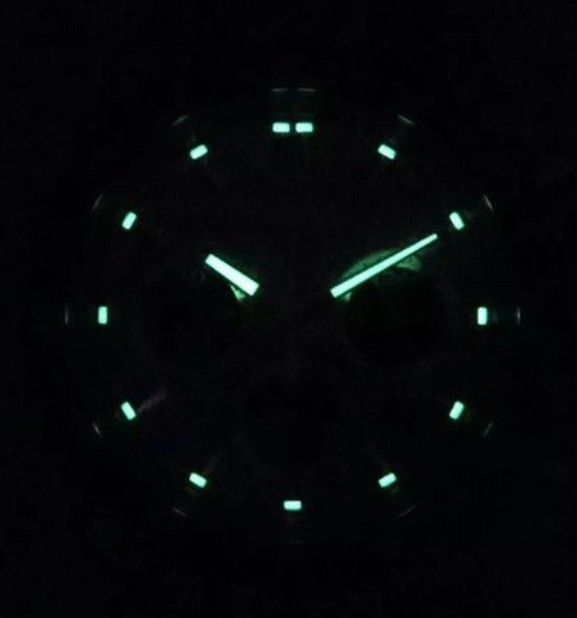 Секундная стрелка часов смещена на маленький циферблат (внизу).
