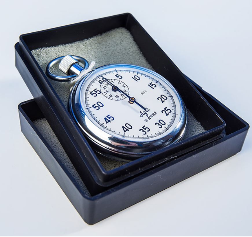 Секундомер - механический, однострелочный, с механизмом простого действия управления стрелками, с прерываемой работой часового механизма, предназначен для измерения интервалов времени в минутах, секундах и долях секунды. Он применяется при проведении спортивных соревнований, научных исследований, хронометражей.
