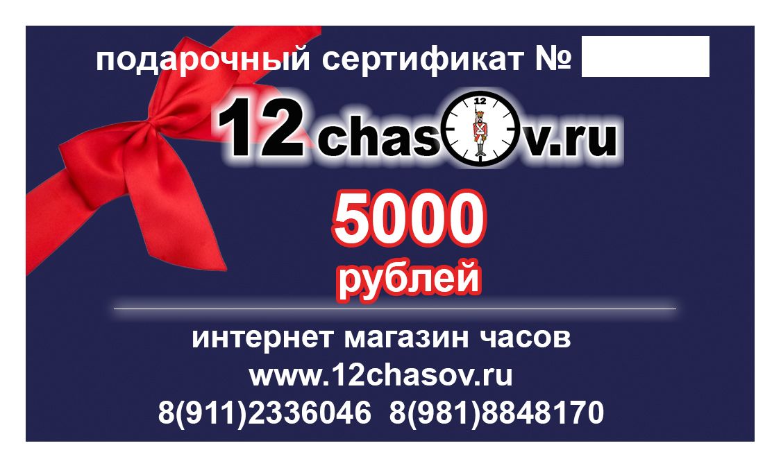 действителен в интернет-магазине 12chasov.ru в течение 1 года с момента приобретения.