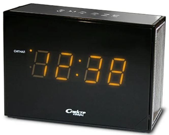Электронный будильник, высота цифр 0,9" (23 мм). Цвет индикации оранжевый.