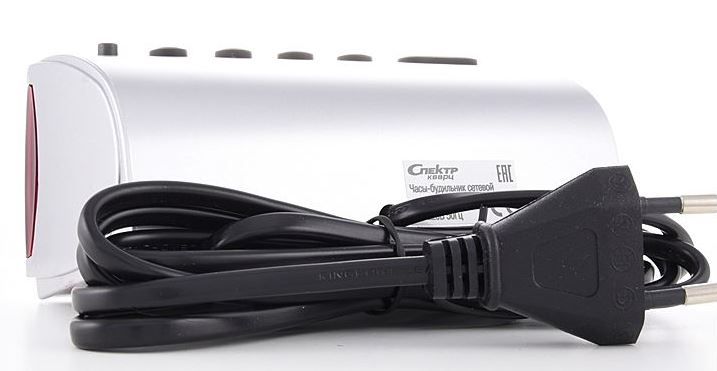 Электронный будильник, высота цифр 0,9" (23 мм). Цвет индикации красный.