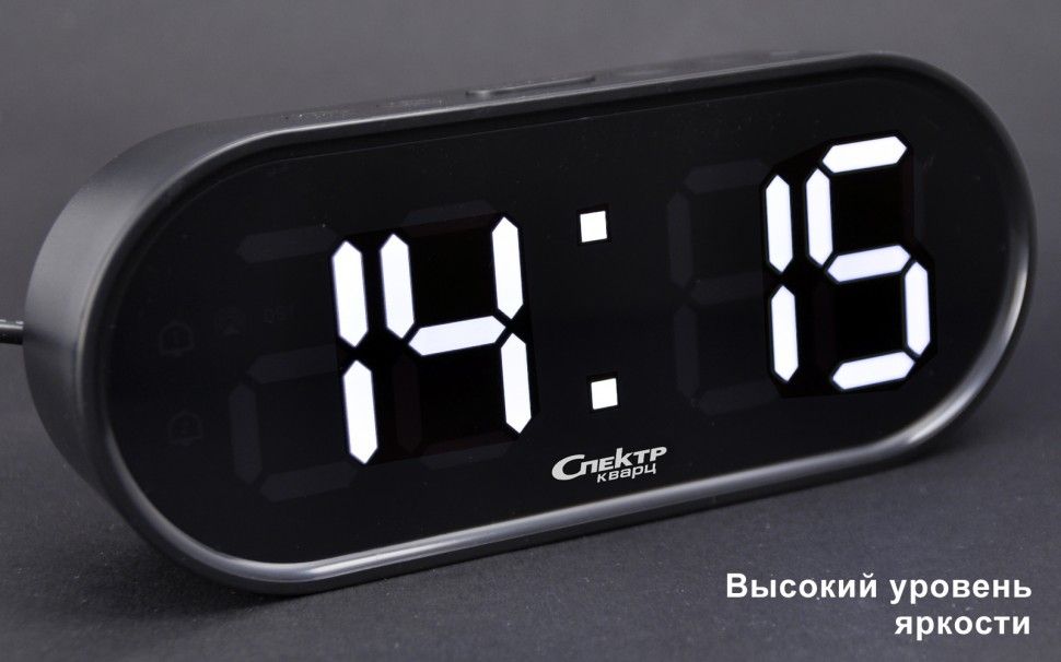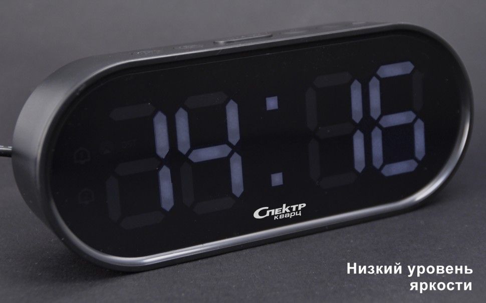 Функциональность: ежедневный будильник, отображение времени в 12 или 24 часовом формате, регулировка яркости индикации (3 ступени, также имеется возможность полностью отключить свечение дисплея), ночной режим яркости (при настроенном ночном режиме, в установленный промежуток времени яркость индикации дисплея автоматически будет установлена на минимальный уровень),