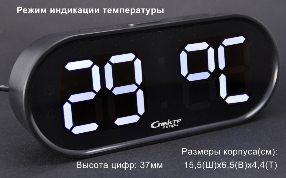 термометр с возможностью индикации температуры в градусах Цельсия (°C) или Фаренгейтах (°F). Высота цифр — 37 мм.