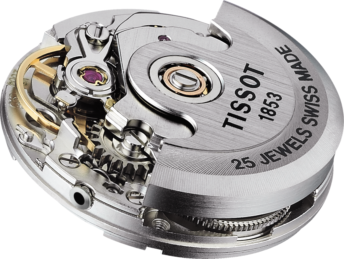 В механизме 25 камней, частота 28800 полуколебаний в час. Запас хода 38 часов.