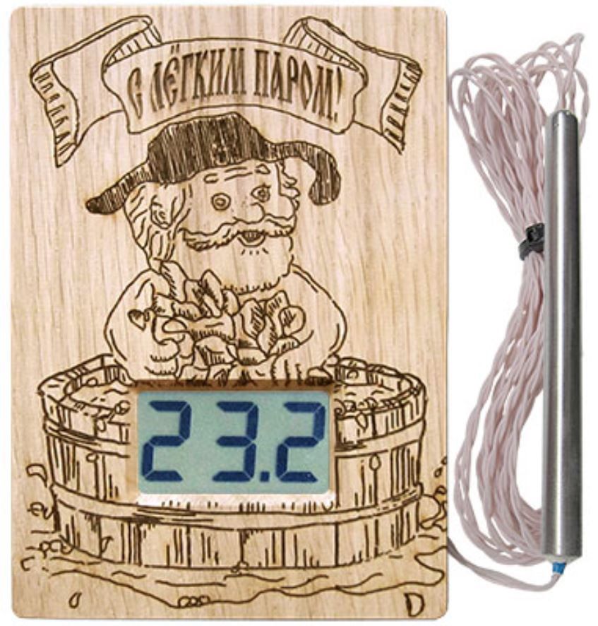 Высокотемпературный термометр для бани ТЭС-ЛЮКС "С легким паром" в корпусе из липы с герметичным датчиком