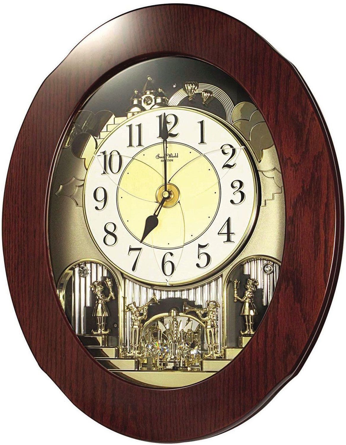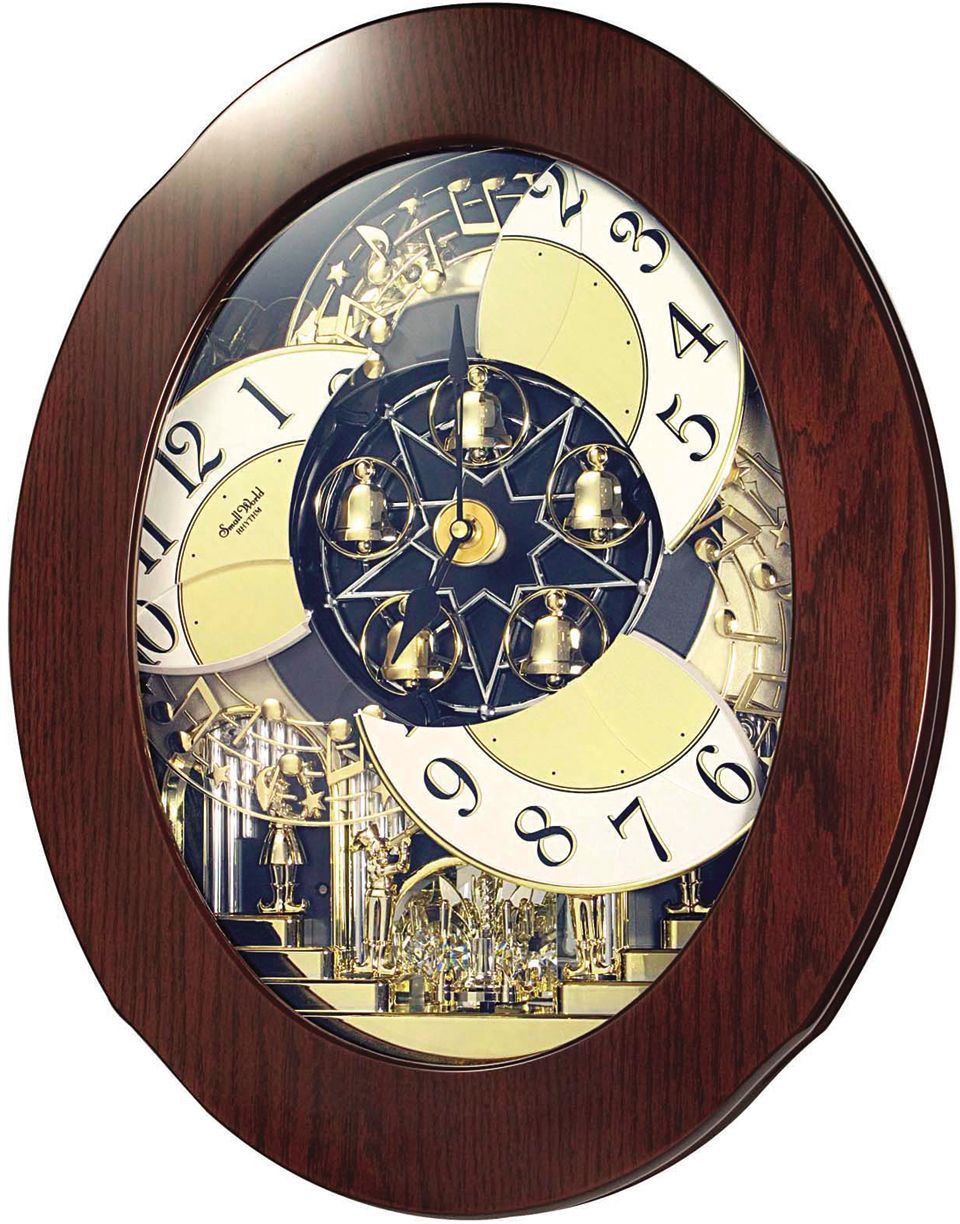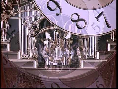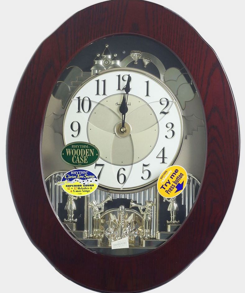 При проигрывании мелодии, циферблат раздвигается на 3 части и вращаясь становится на свое место.