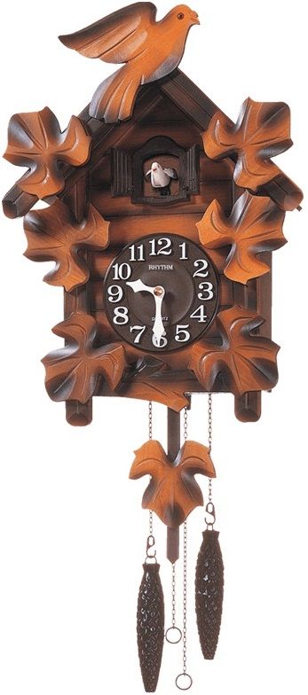 ФОРМАНЕОБЫЧНОЙ ФОРМЫЦВЕТ КОРПУСАКОРИЧНЕВЫЙМАТЕРИАЛ КОРПУСАДЕРЕВОЦВЕТ ЦИФЕРБЛАТАКОРИЧНЕВЫЙМАЯТНИККЛАССИЧЕСКИЙЦИФРЫАРАБСКИЕОТКЛЮЧЕНИЕ ЗВУКААВТОМАТИЧЕСКОЕ ФОТОЭЛЕМЕНТ(когда темно)КУКУШКАестьВЫСОТА55 СМ