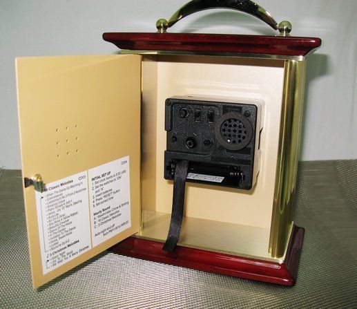 Настольные часы с боем курантов и мелодией, в металлическом корпусе.